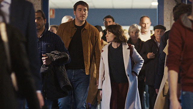 Un giro, una información que un componente de la pareja desconocía del otro, amplía la inestabilidad a la propia percepción y concepción de la relación. Un cambio de enfoque que viene reflejado, con agudeza, por un cambio en la planificación, una sucesión de planos laterales de un rostro que, de repente, mira a su pareja como si fuera otra persona. En su mirada se aposentan las interrogantes, por lo que el escenario de la relación se ve desestabilizado. El diseño sonoro, los ruidos de unas obras en los pasillos de esa sección de despachos, acrecienta el enrarecimiento y el desvalimiento de la pareja durante los sucesivos interrogatorios, sea primero por la agente Vásquez (Laura Gómez) a la que se unirá, posteriormente, el agente Barrett (Ben Temple), como si el cerco se ampliara. Su realidad se desmorona progresivamente durante unas horas en las que un control de aduana reconfigura de modo radical la percepción y concepción de su relación.